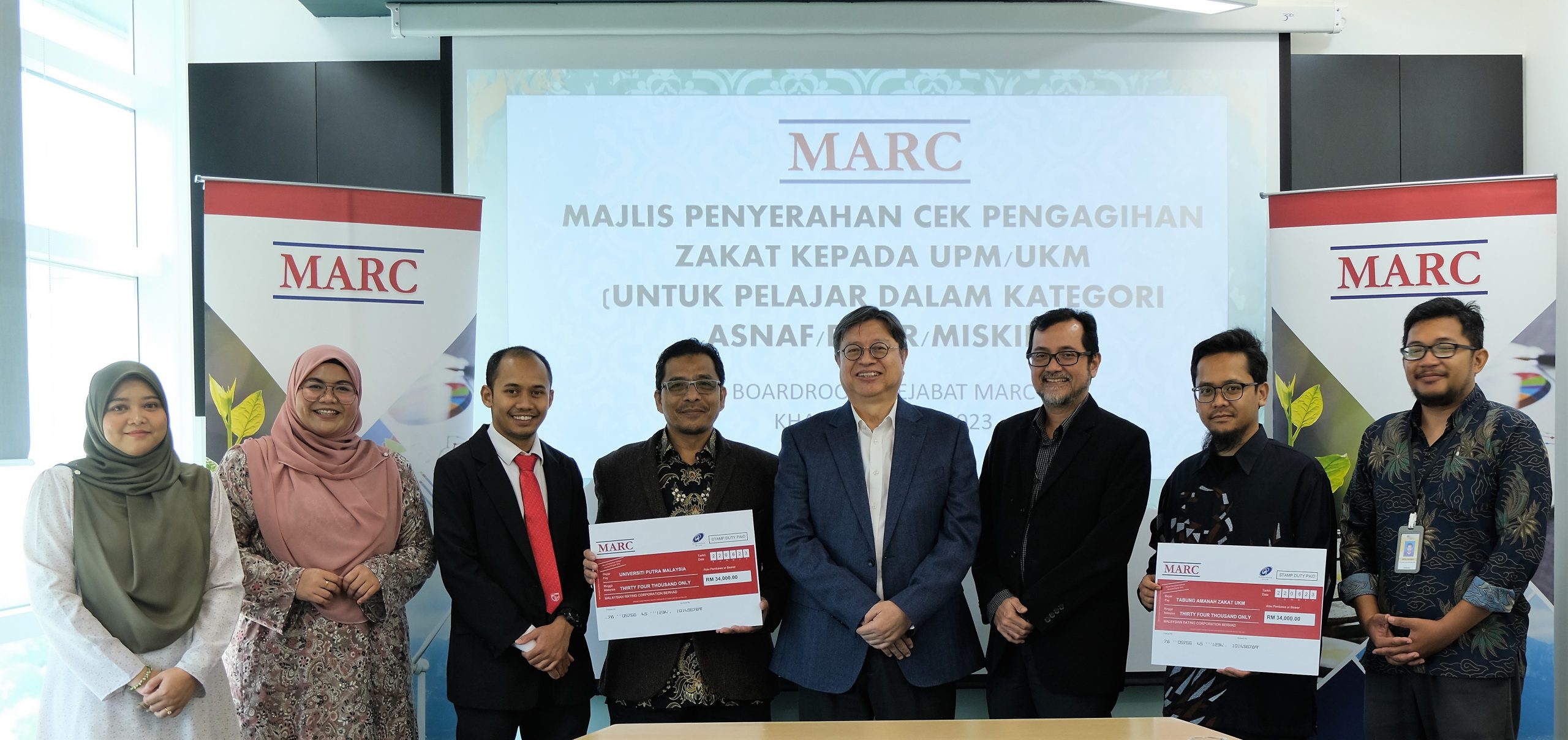In an effort to bolster the education sector in the country, Malaysian Rating Corporation Berhad (MARC), one of Malaysia’s leading financial services providers in Malaysia, presented zakat contributions totalling RM68,000 to two esteemed higher learning institutions, Universiti Putra Malaysia (UPM) and Universiti Kebangsaan Malaysia (UKM). These donations were made possible through zakat deductions from MARC staff, obtained from Majlis Agama Islam Wilayah Persekutuan (MAIWP).