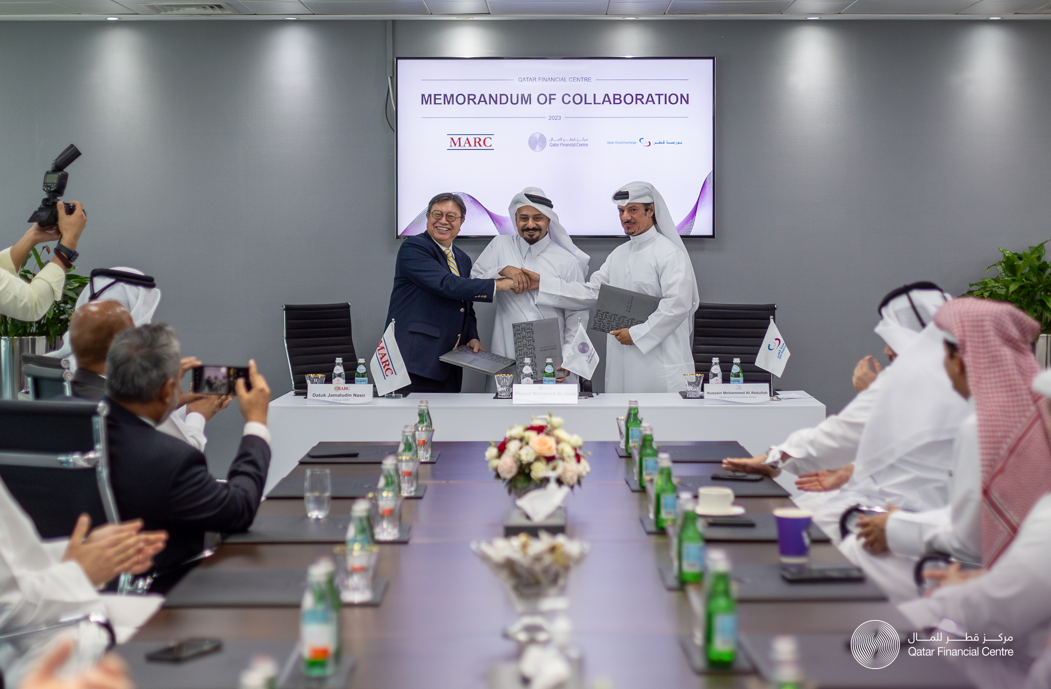 Malaysian Rating Corporation Berhad (MARC) has officially entered into a Memorandum of Collaboration (MoC) with both the Qatar Financial Centre Authority (QFCA), representing the legal and tax arm of the Qatar Financial Centre (QFC), a leading onshore financial and business hub in the Middle East, and the Qatar Stock Exchange (QSE). The signing of the MoC was held recently on 6 September 2023 in Doha, Qatar.